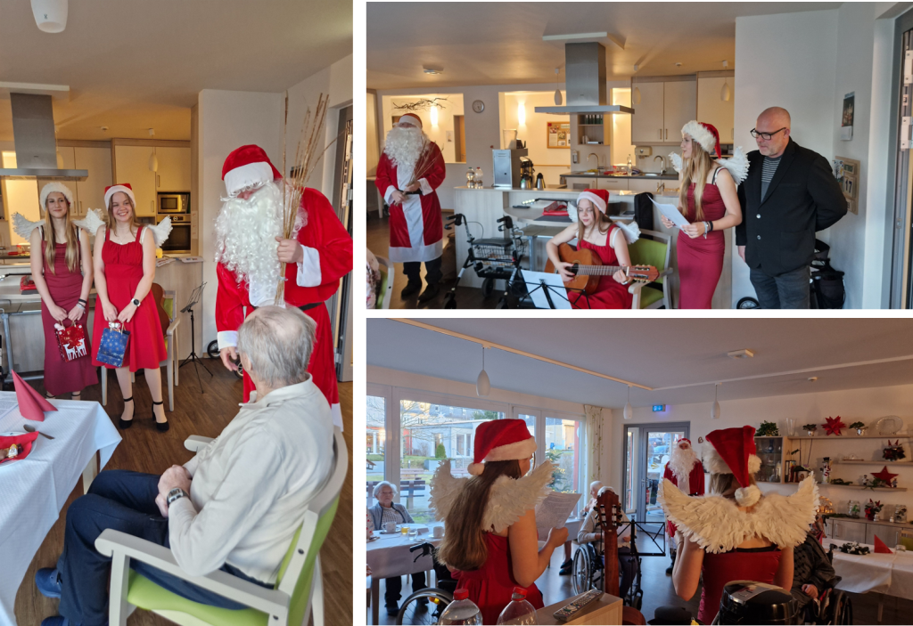 An den Nachmittagen besuchte der Weihnachtsmann mit seinen zwei Engeln unser Haus. Nach einem gemeinsamen Singen und dem Vortragen einer lustigen Weihnachtsgeschichte wurden die Geschenke verteilt.